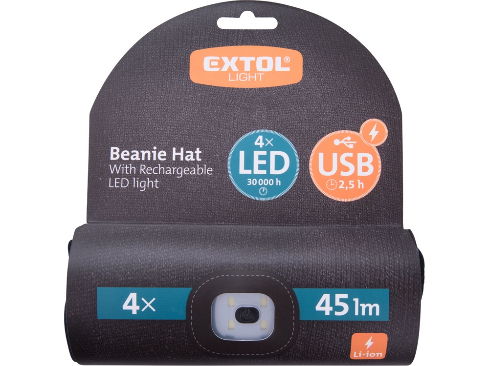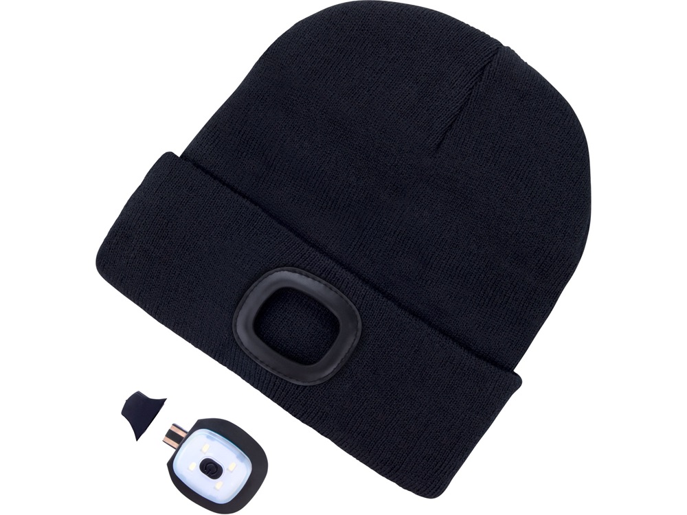 - Kötött, fekete színű sapka kivehető LED homloklámpával.