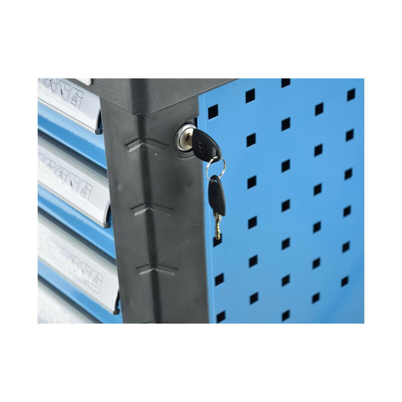 Felszerelt gurulós szerszámos kocsi.