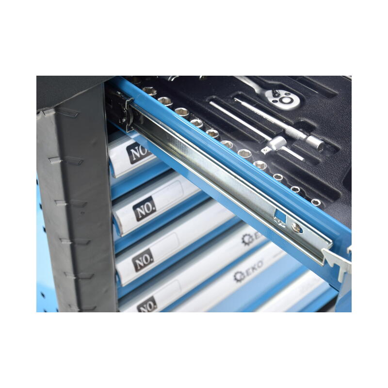 - 2. fiók (53 cm x 5,5 cm x 45 cm) : racsnis csillag villáskulcs készlet, dugókulcsok, imbuszkulcs készlet, bit dugókulcsok