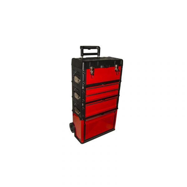 - Négy részes szerszámos láda kihúzható hordozó füllel (320 mm) mely 3 pontban fixálható, valamint 2 kerékkel (Ø 120 mm)