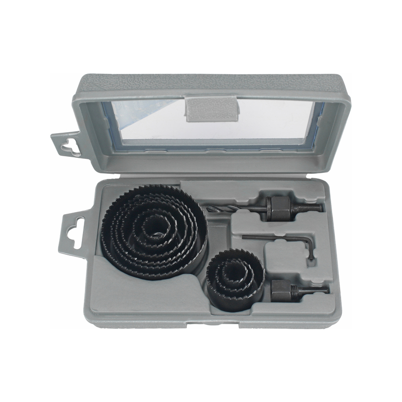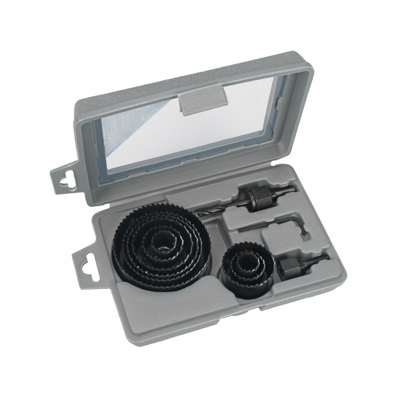 - 9 db lyukfűrész: ø 19, 22, 28, 36, 44, 51, 60, 68, 82 mm