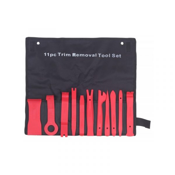 - A készlet 11 db különböző méretű és alakú, mindkét végével használható eszközt tartalmaz, amelyek lehetővé teszik a műanyag patenteknek, kötőelemek, kárpitrögzítők, díszítőelemek, márkajelek, kárpitok és burkolatok könnyű és gyors eltávolítását