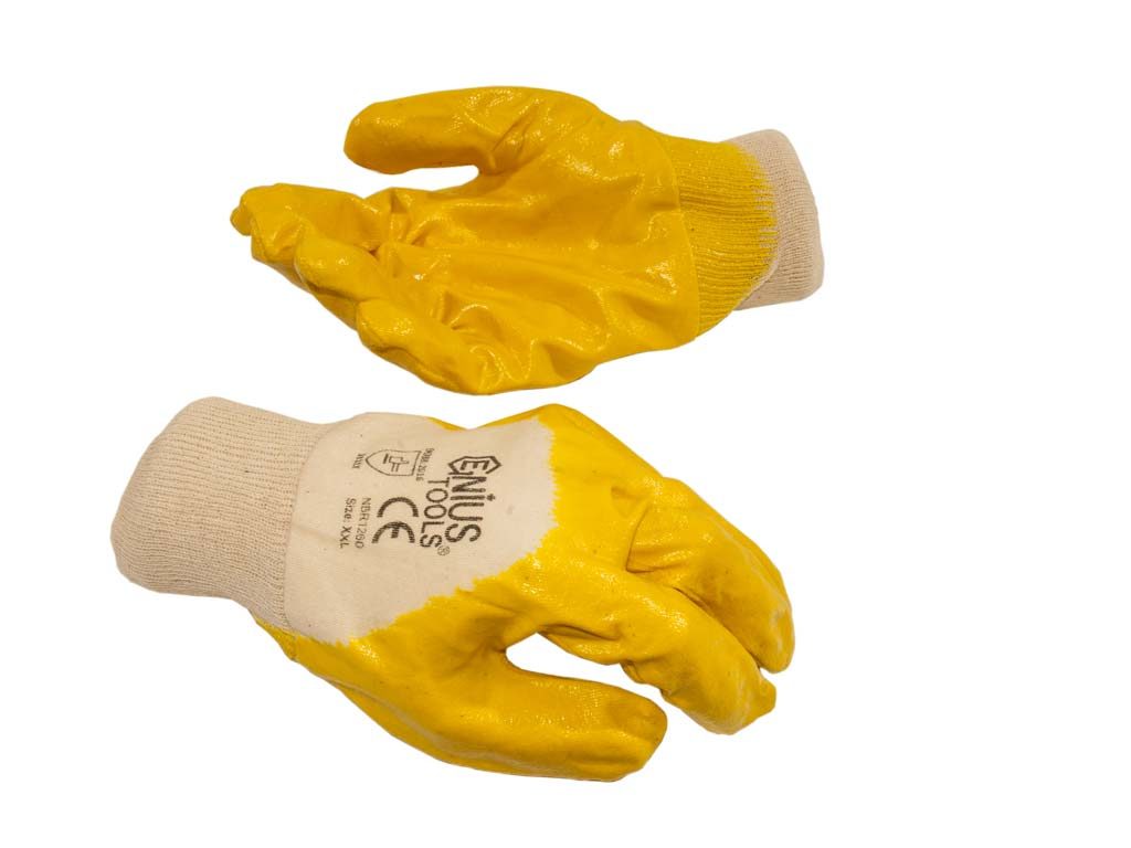 Nitril mártott pamut kesztyű kötött mandzsettával, 3/4 részben nitril bevonatú az olajjal szembeni ellenállásért.
