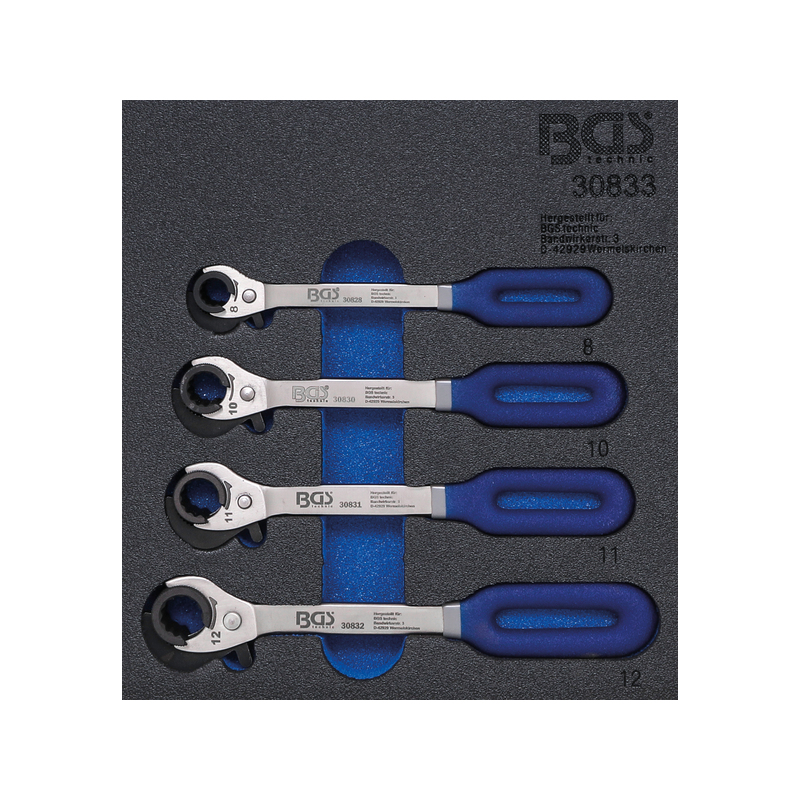 Tálcás racsnis nyitott kulcs készlet (fékcsőkulcs) 4 részes